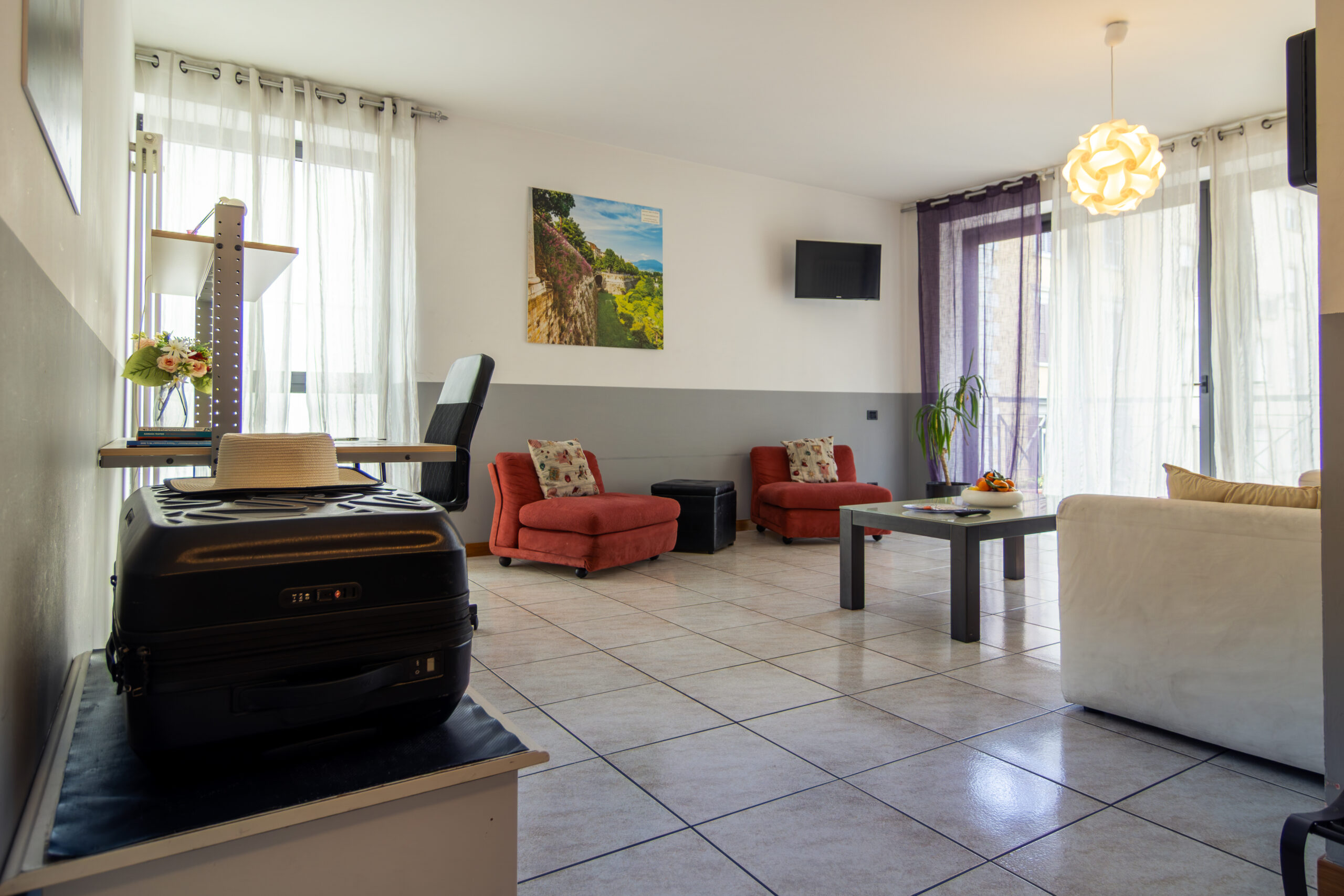 Ogni appartamento è composto da 2 camere da letto di cui una arredata con letto matrimoniale ed un letto singolo e l’altra, di dimensioni più generose, con letto matrimoniale e 2 letti singoli, garantendo la permanenza fino a 7 persone. A ciò va aggiunta la possibilità del servizio baby cot. Entrata riservata, una cucina abitabile ed accessoriata, ampia sala con terrazza.