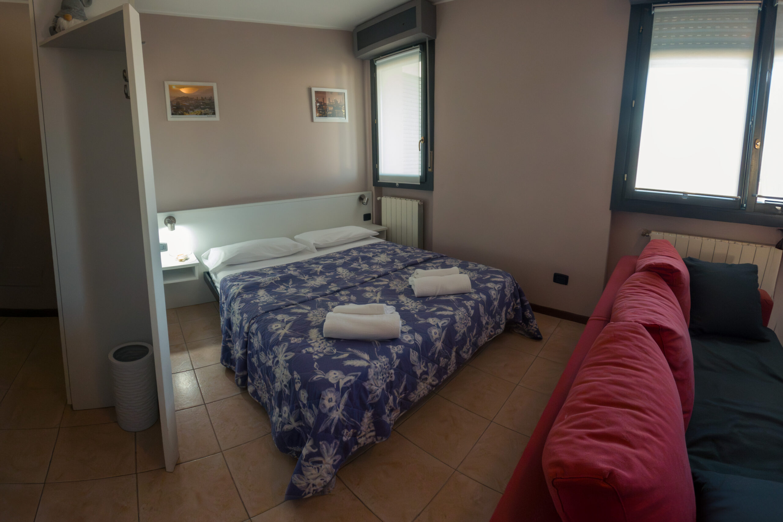 Dispone di : balconcino coperto, ampio bagno con vasca angolare per due, disimpegno ed open space con letto matrimoniale, letto singolo e divano letto singolo e angolo cucina.